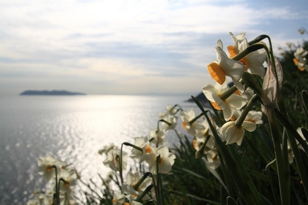 展望台からは、ニホンズイセンの鮮やかなレモンイエローとブルーの海との美しいコントラストをお楽しみいただけます。